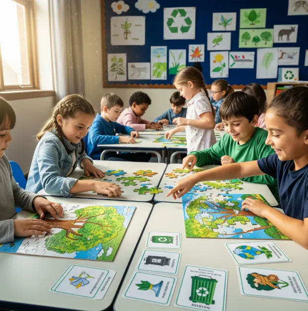 Eco Puzzles help improve hand-eye coordination and dexterity. As students align and connect the pieces, they develop confidence and independence through tactile learning.